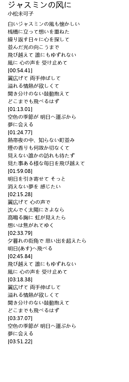 | [00:19.62] | 白いジャスミンの風も懐かしい |