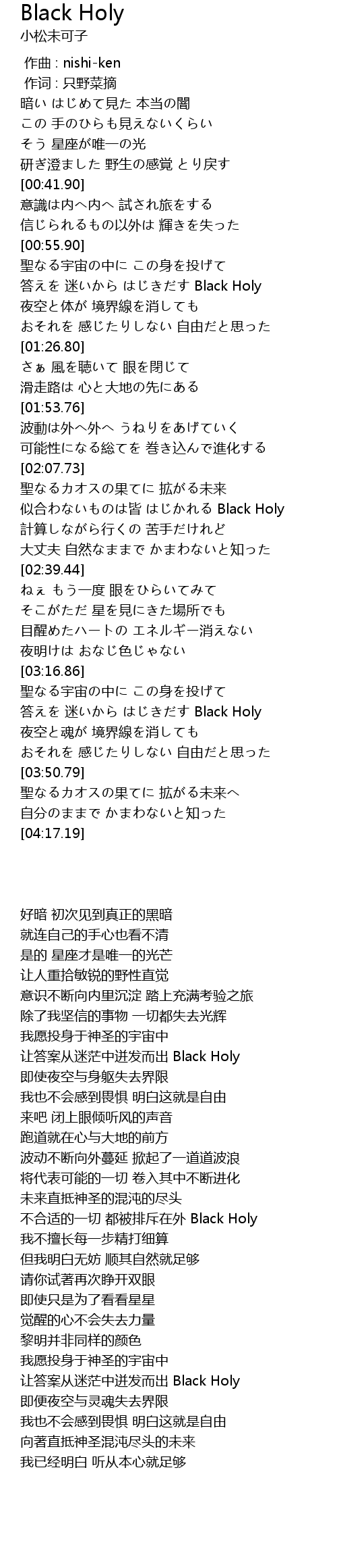 | [03:26.55] | 答えを 迷いから はじきだす Black Holy |
