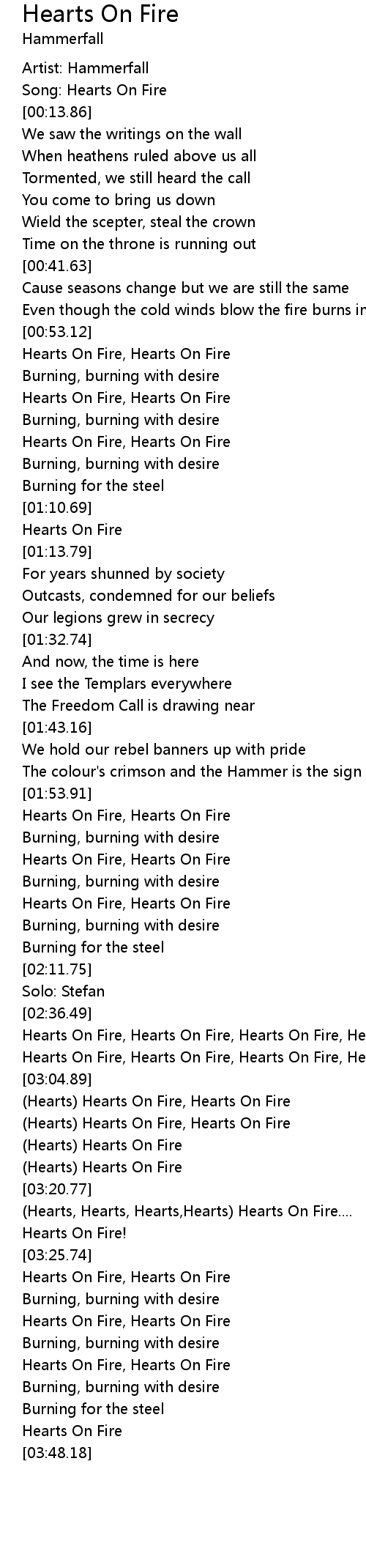 Song: Hearts On Fire |
