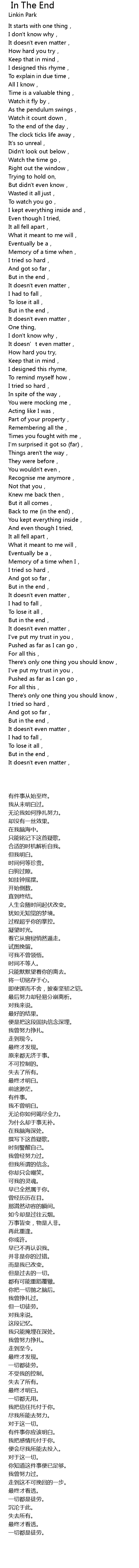 | 歌曲 | In The End |