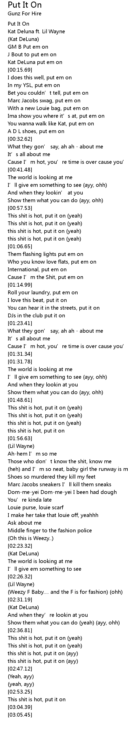 | [01:02.62] | this shit is hot, put it on (yeah) |