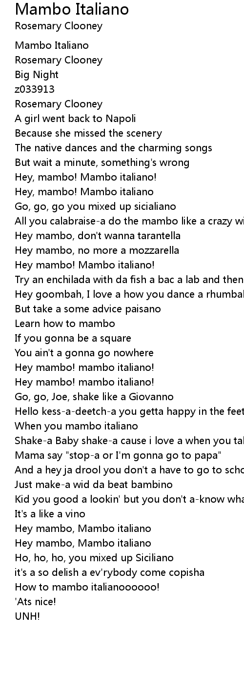 Hey, mambo! Mambo italiano! |