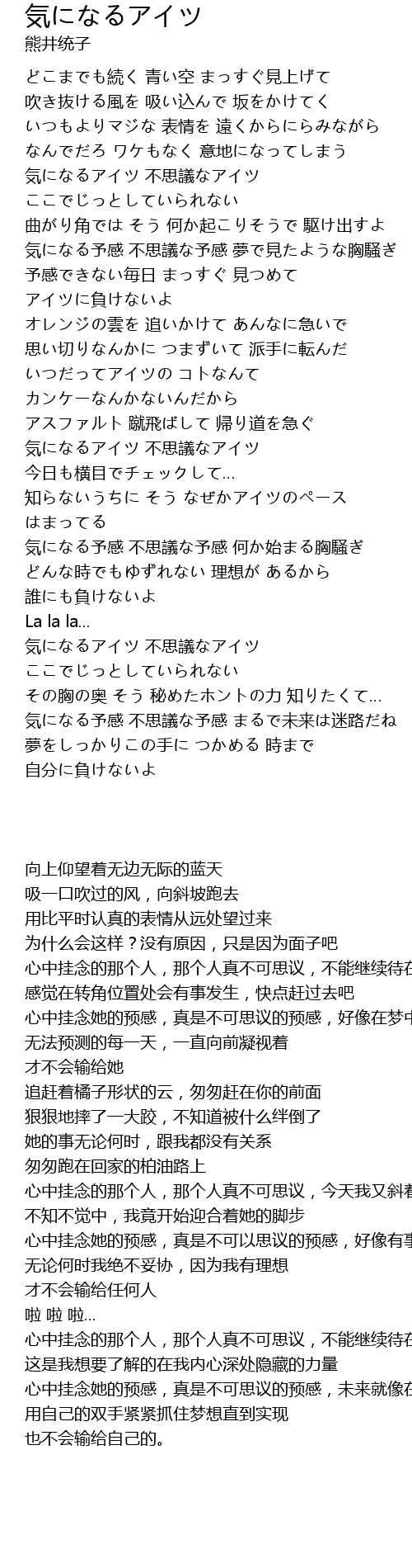 | [02:46.730] | 気になる予感 不思議な予感 何か始まる胸騒ぎ |