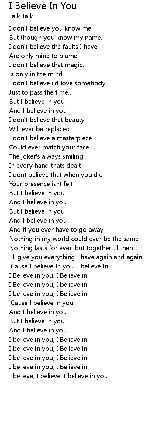I believe in you, I Believe in. |