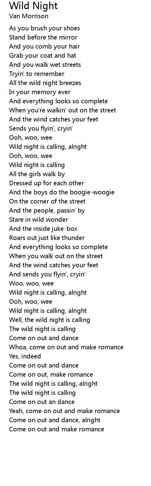 Well, the wild night is calling |