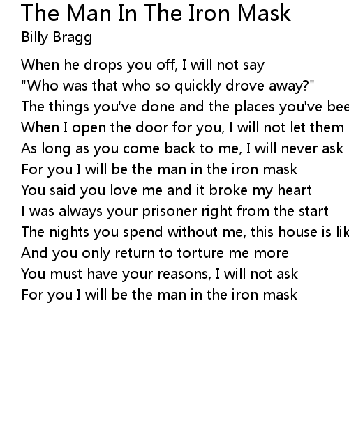 For you I will be the man in the iron mask |