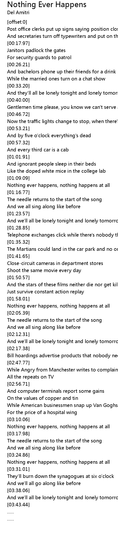 Nothing ever happens, nothing happens at all |