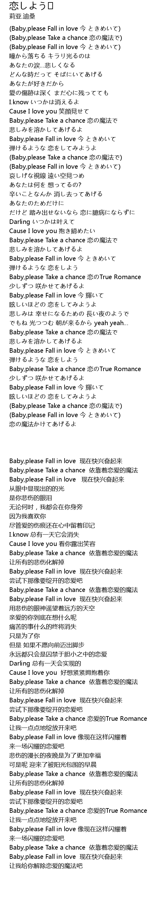 | [00:22.31] | (Baby,please Fall in love 今 ときめいて) |