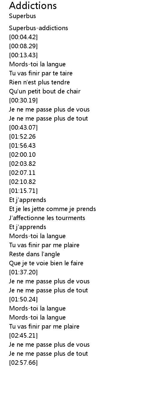 [03:02.17][01:52.26][00:45.19] J'additionne les addictions