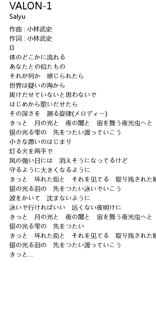 | 银の光る泪の 先をつたい泳いでいこう | |