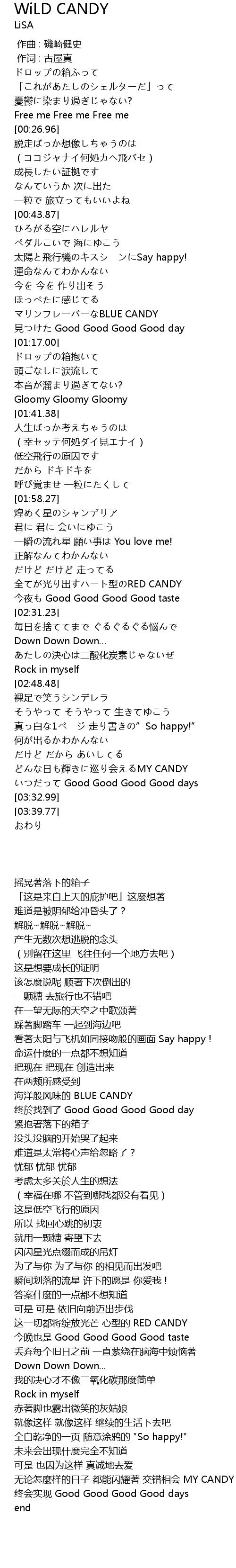 | [02:18.93] | 这一切都将绽放光芒 心型的 RED CANDY |