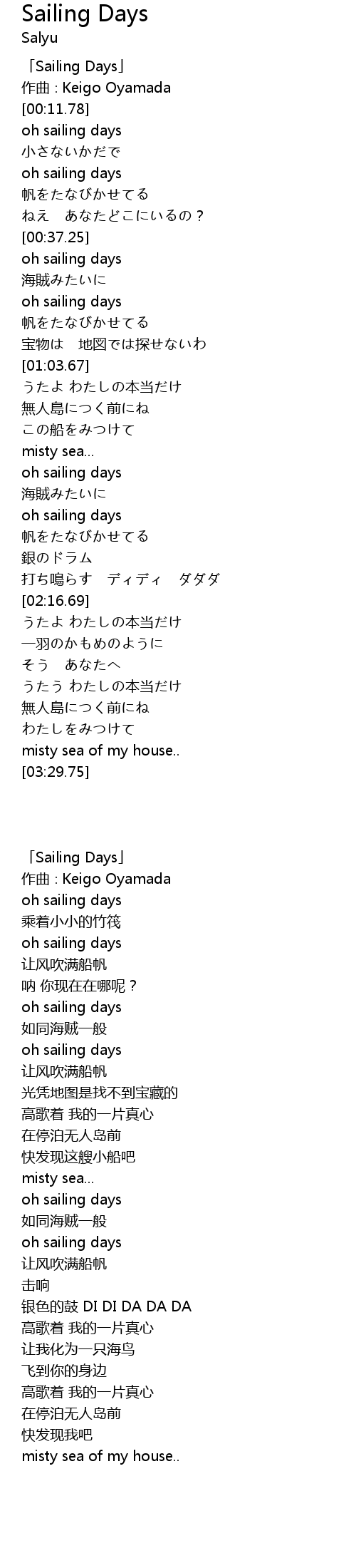 「Sailing Days」 |