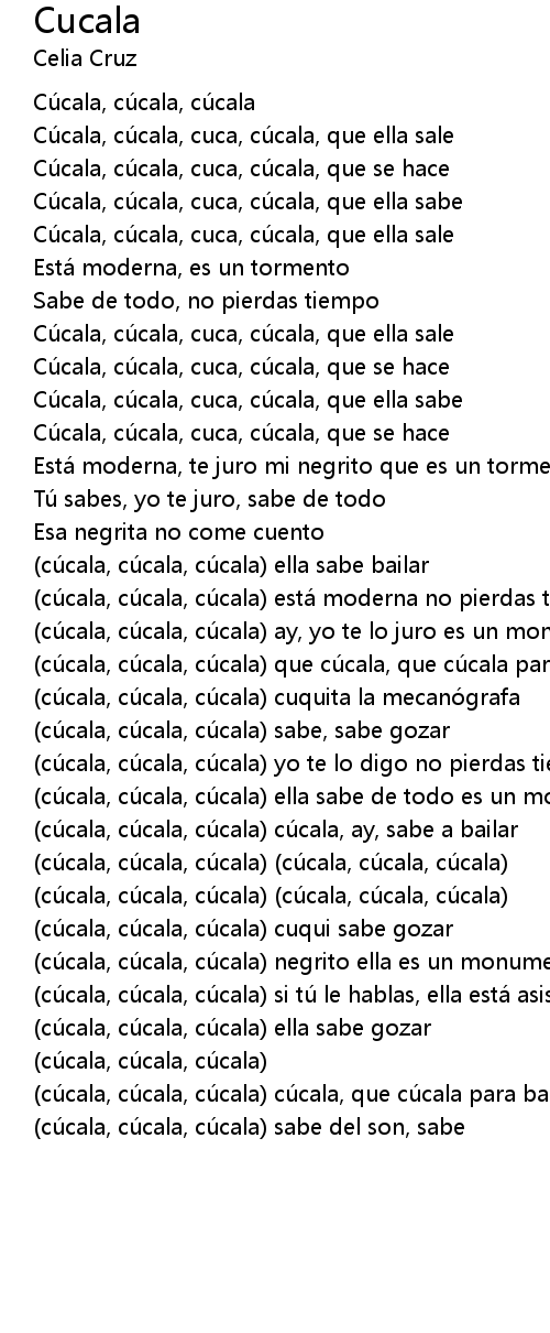| cú cala, cú cala, cú cala cú cala, que cú cala para bailar | |