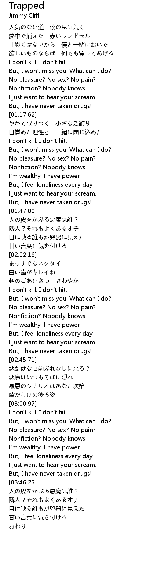| [01:45.10] | But, I have never taken drugs! |