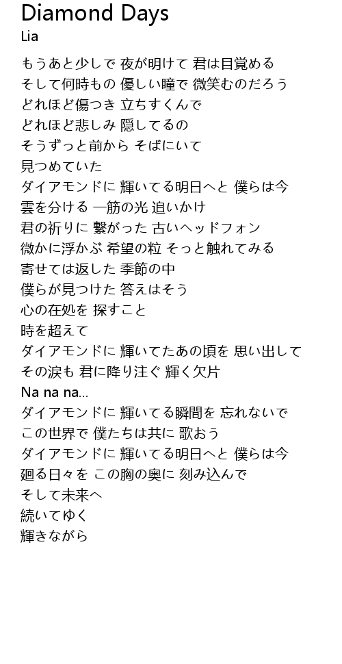 | 歌曲 | Diamond Days |