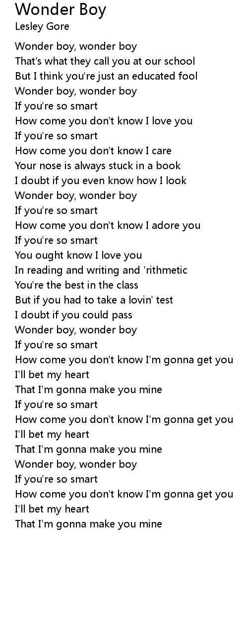 Wonder boy, wonder boy |