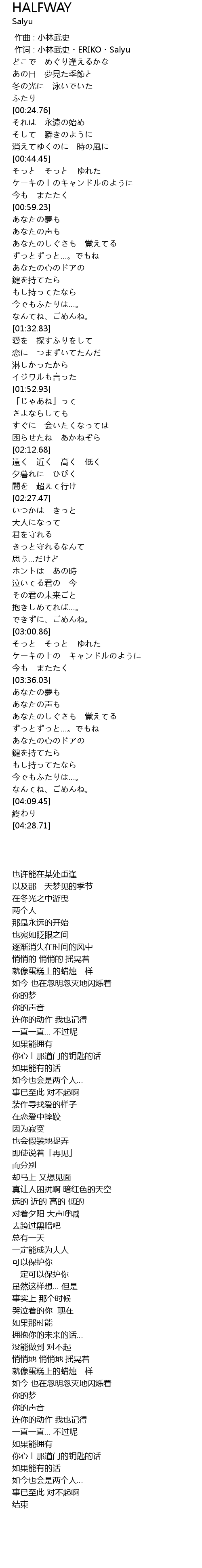| [00:01.00] | 作词 : 小林武史・ERIKO・Salyu |