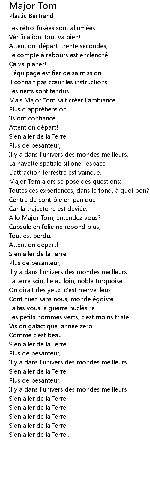 | Major Tom alors se pose des questions: | |