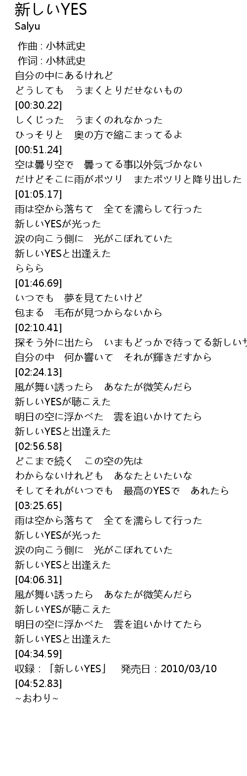 | [04:42.17] | 収録:「新しいYES」 発売日:2010/03/10 |