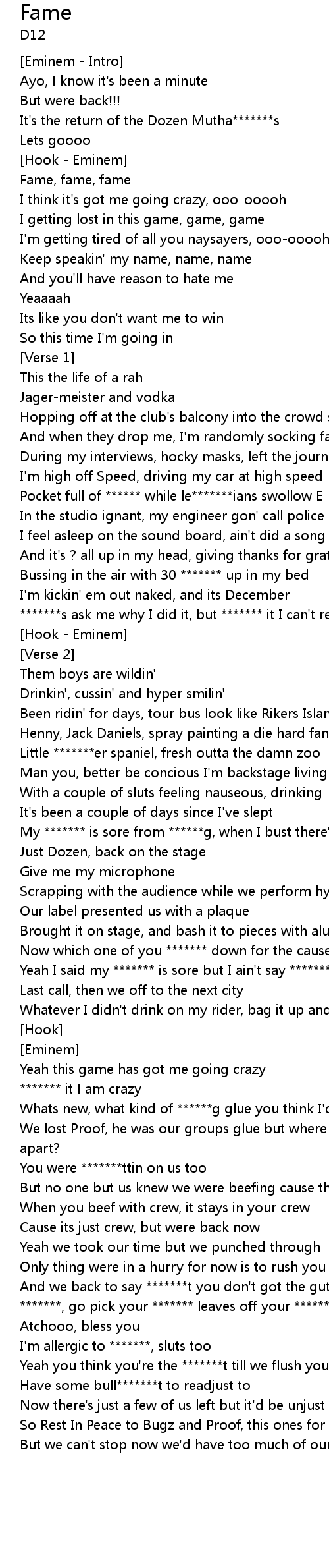 But we can't stop now we'd have too much of our blood drew from this fame |