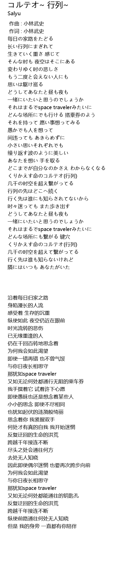 | [04:02.000] | それはまるでspace travelerみたいに |