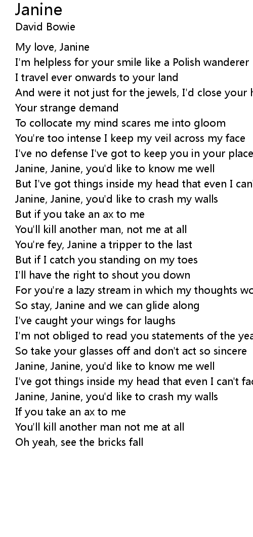 Janine, Janine, you'd like to crash my walls |
