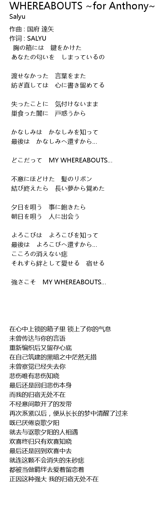 | 歌曲 | WHEREABOUTS ~for Anthony~ |