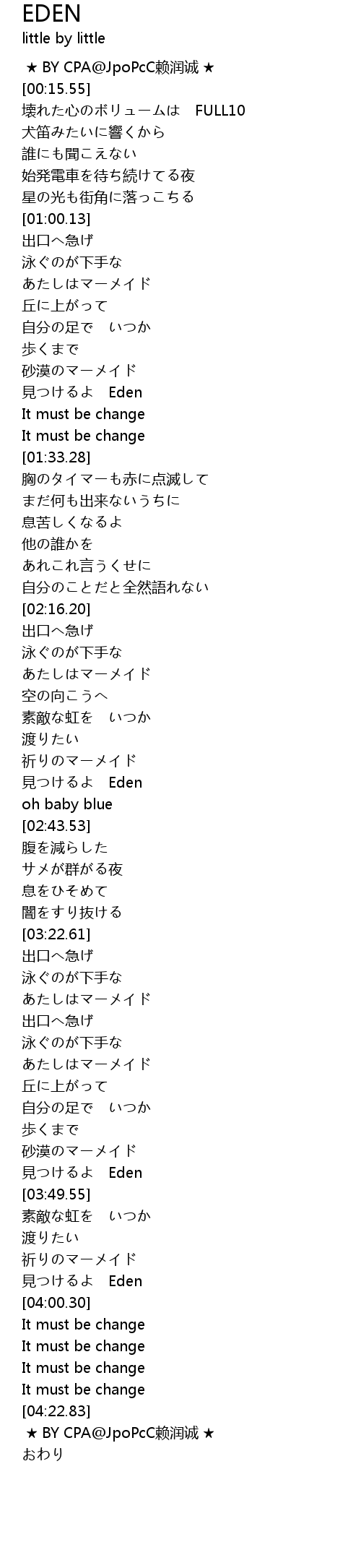 | [02:36.18] | 見つけるよ Eden |
