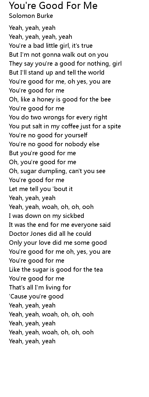You're good for me, oh yes, you are |