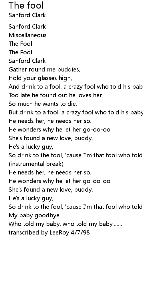 But drink to a fool, a crazy fool who told his baby goodbye. |