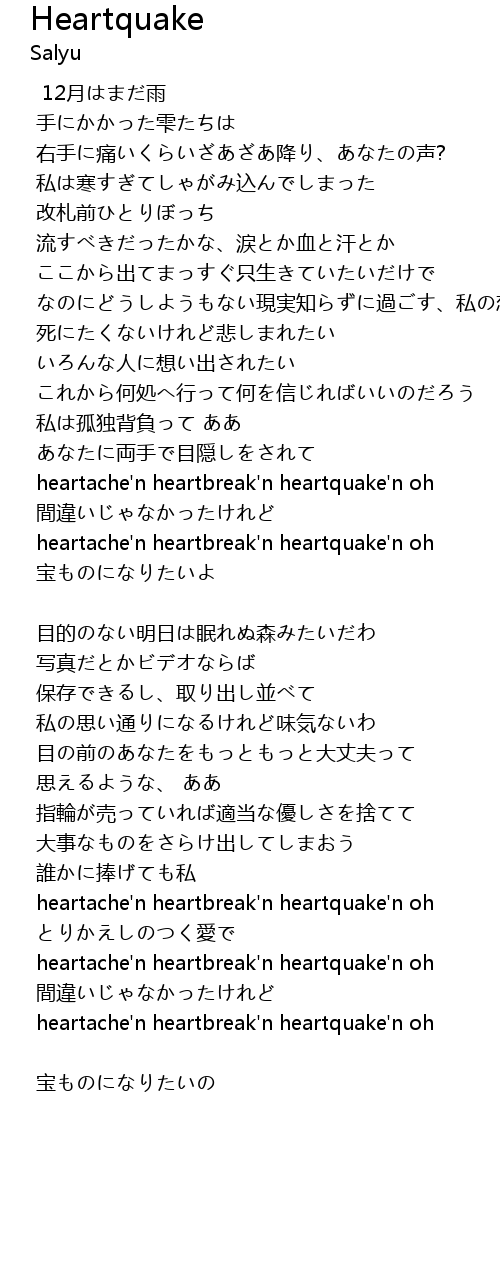 | heartache'n heartbreak'n heartquake'n oh | |