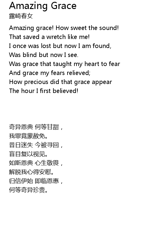 | [00:01.40] | Amazing grace! How sweet the sound! |