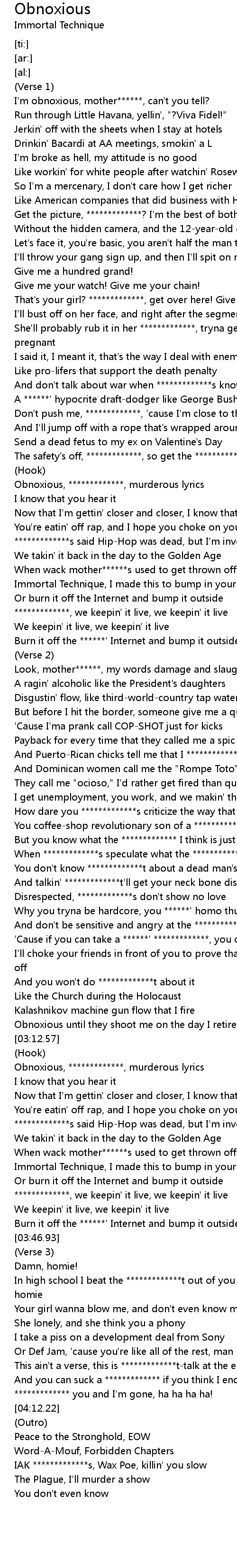 Obnoxious, *************, murderous lyrics |
