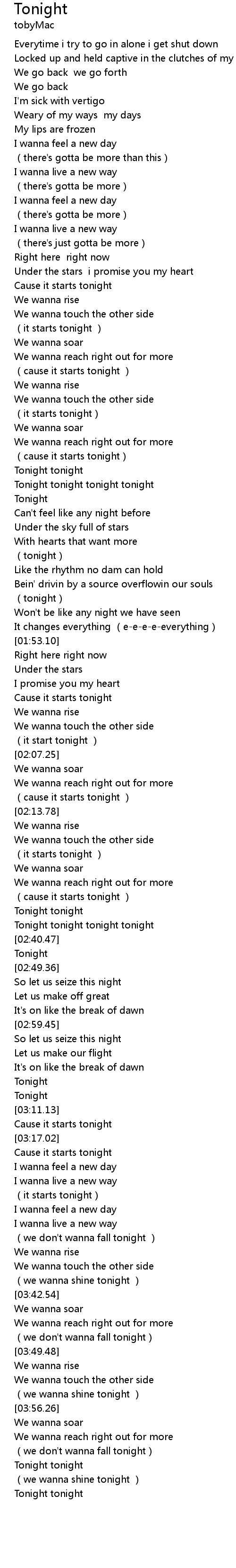 | [01:33.50] | Tonight |