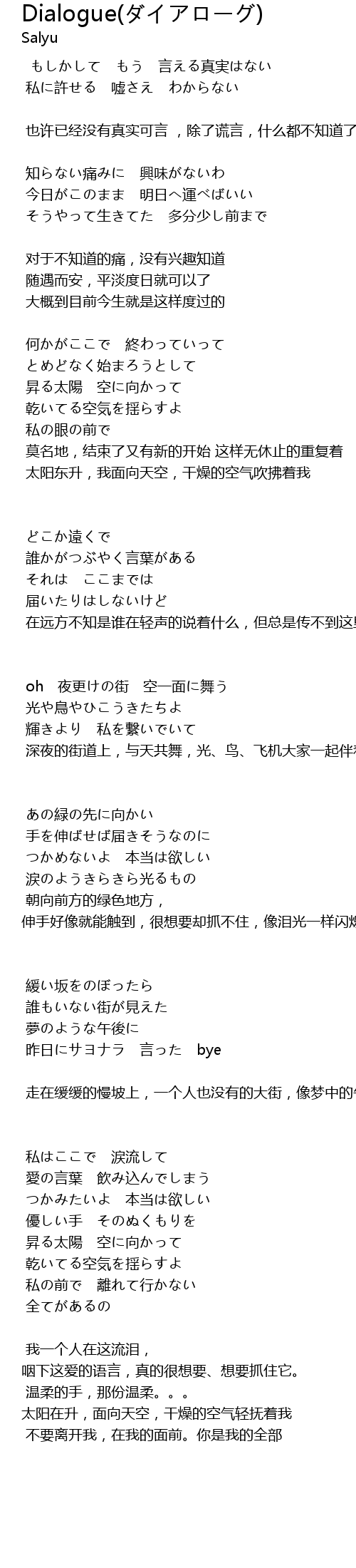| zǒu zài huǎn huǎn de màn pō shàng, yí ge rén yě méi yǒu de dà jiē, xiàng mèng zhōng de wǔ hòu yí yàng, xiàng zuó tiān shuō zài jiàn, byebye | |