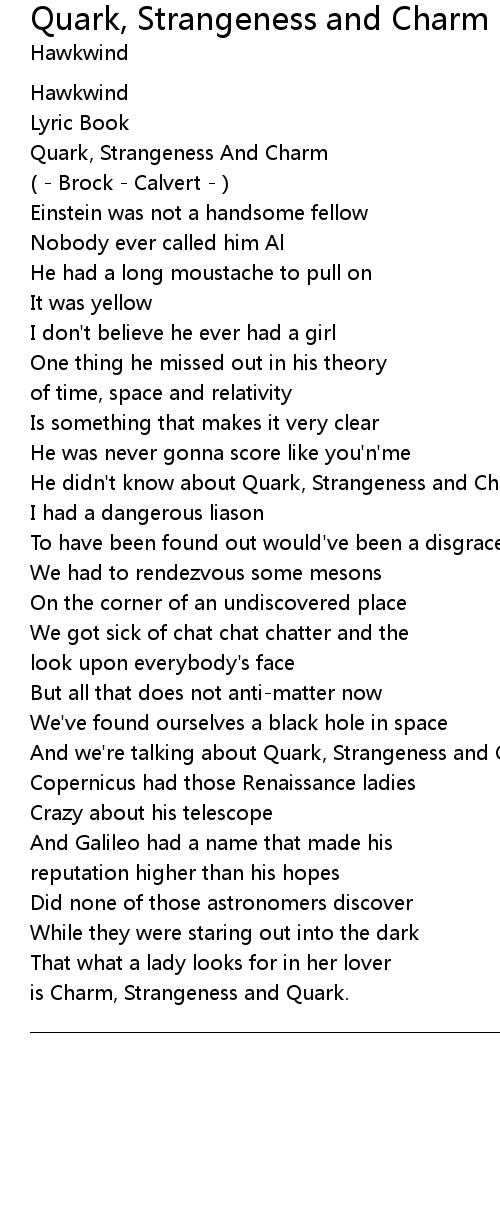 Quark, Strangeness And Charm |