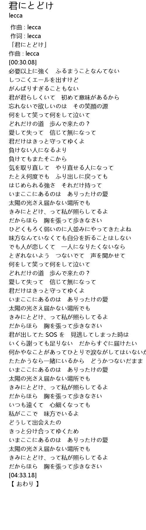 | [00:01.08] | 「君にとどけ」 |