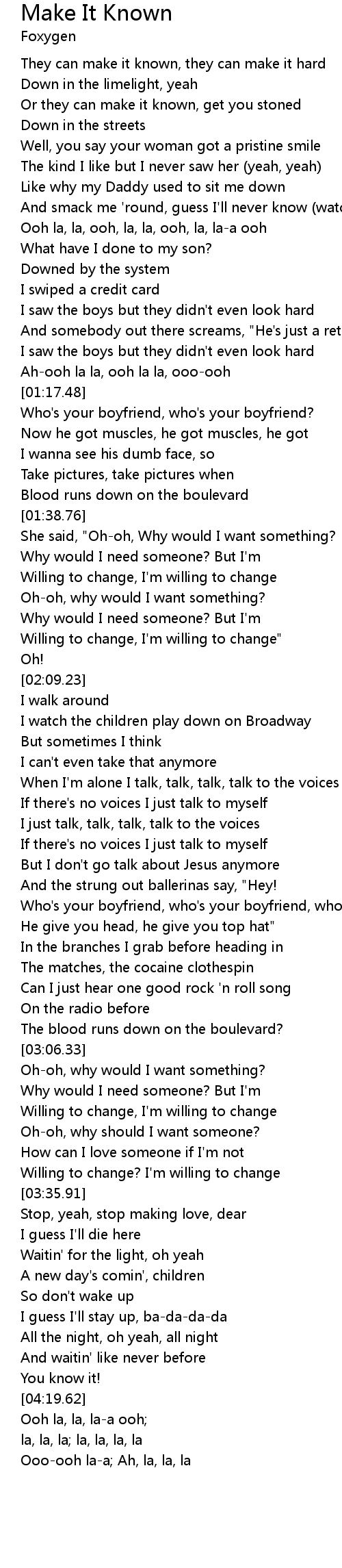 | [04:41.03] | Ooo-ooh la-a; Ah, la, la, la |