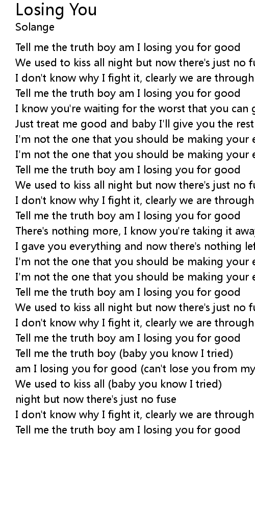 | Tell me the truth boy am I losing you for good |
