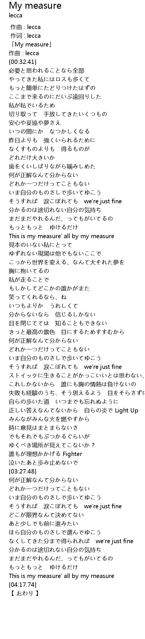 | [03:38.05] | いま自分のものさしで歩いてゆこう |