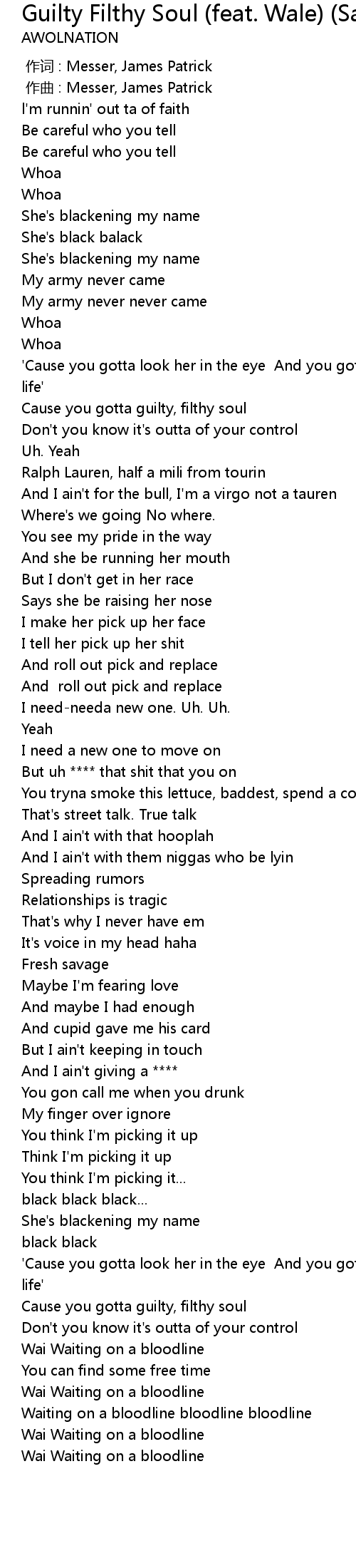 | 歌曲 | Guilty Filthy Soul (feat. Wale) (Sam Ronson Remix) |