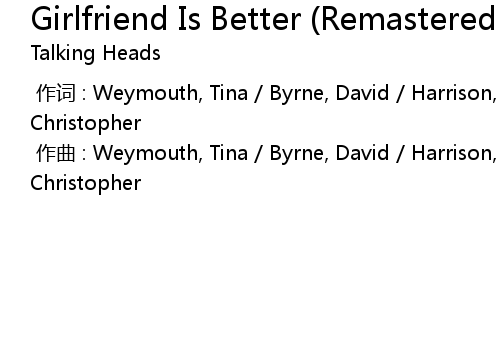 | [00:00.000] | 作曲 : Weymouth, Tina / Byrne, David / Harrison, Jerry / Frantz, Christopher |