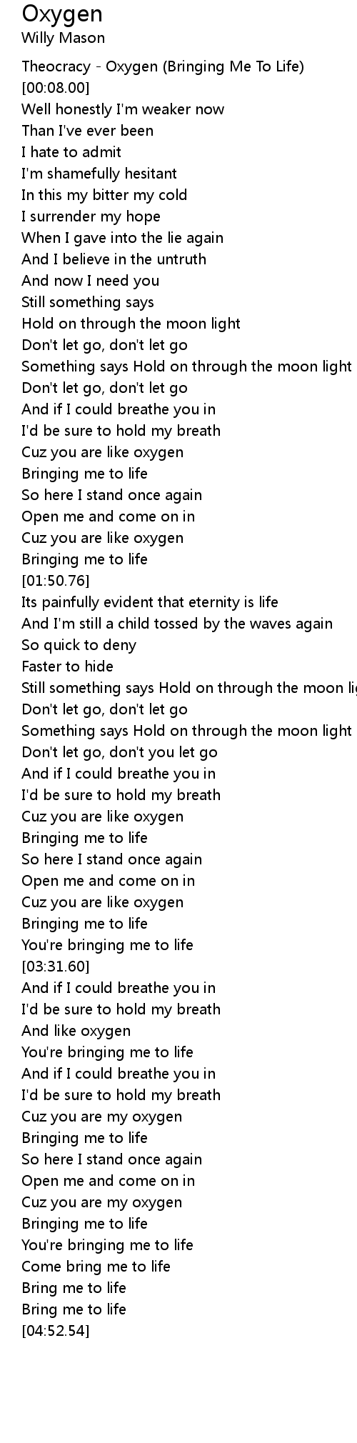 Cuz you are my oxygen |