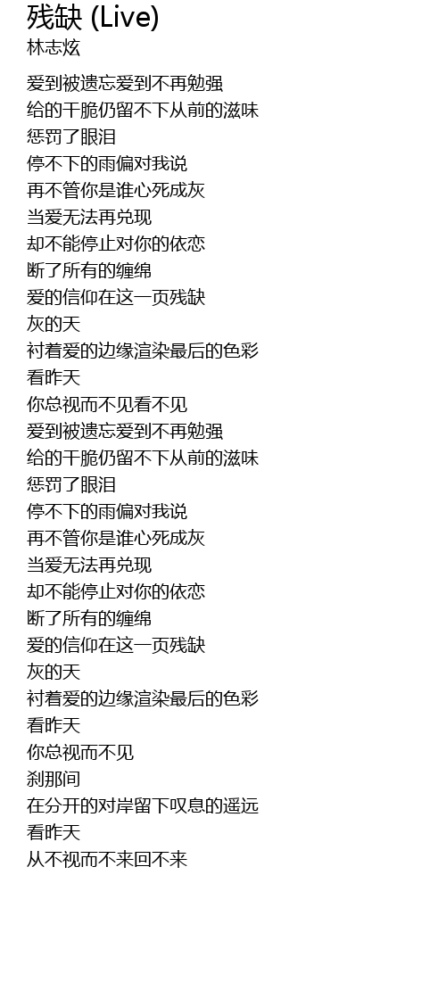 | [00:59.45] | 爱的信仰在这一页残缺 |