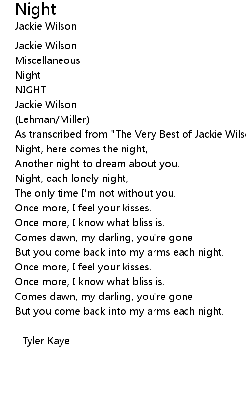As transcribed from "The Very Best of Jackie Wilson" |