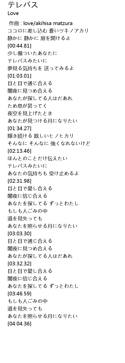 | [00:00.00] | 作曲 : love/akihisa matzura |