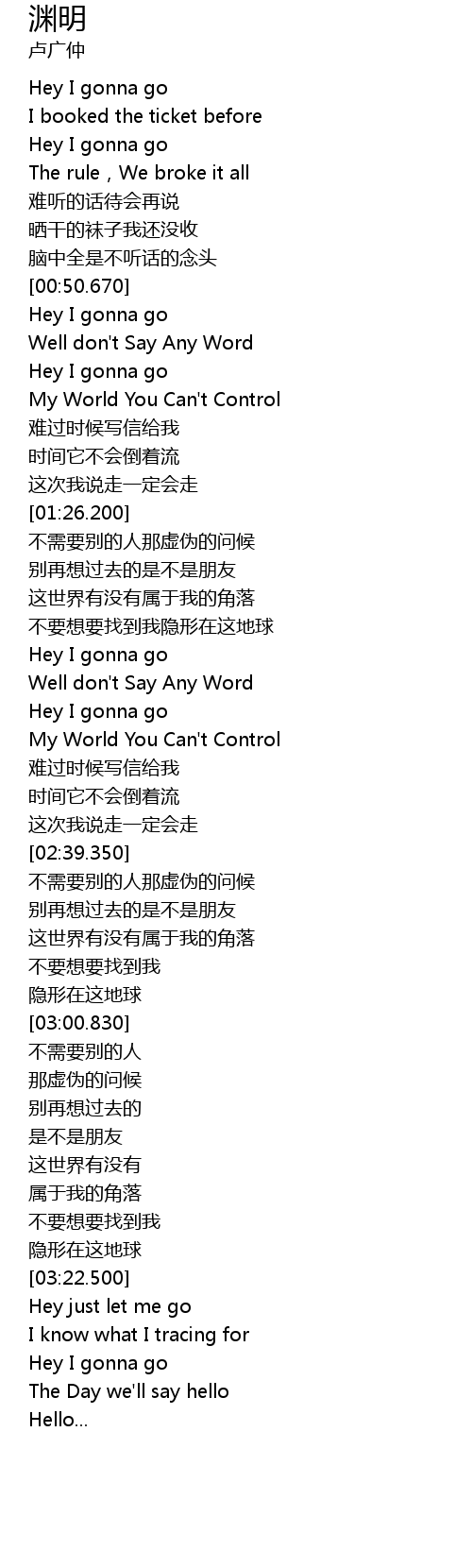 | [00:17.180] | Hey I gonna go |