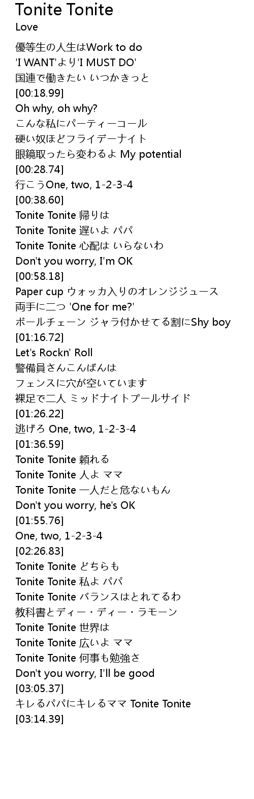| [01:41.41] | Tonite Tonite 人よ ママ |