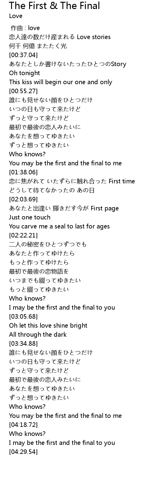| [04:12.85] | You may be the first and the final to me |