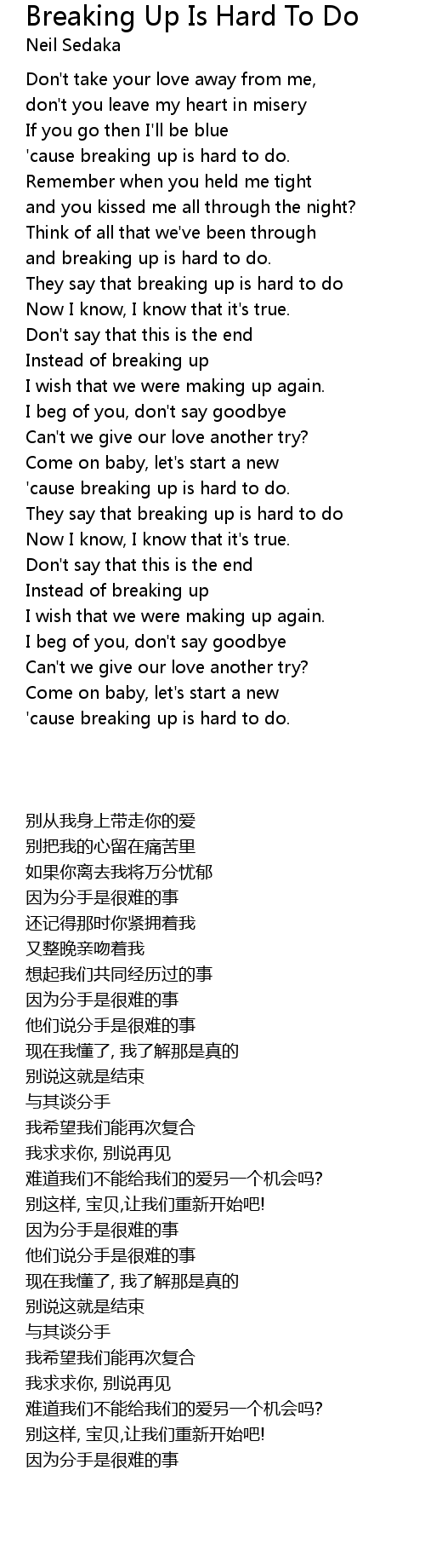 'cause breaking up is hard to do. |